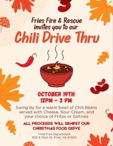 Chili drive-thru at the Fries Fire House 12 noon – 3 p.m.