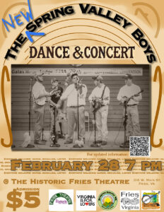 The New Spring Valley Boys at The Historic Fries Theatre. Feb 28 – Dance and concert. 7 pm.