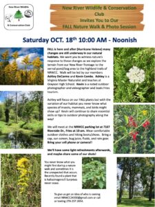 Fries Tourism is partnering with the New River Wildlife and Conservation Club to bring you the Fall Nature Walk and Photo Clinic. Join Virginia Master Naturalist Ashely DeCarme and local photographer and videographer Kevin Combs as we explore the diverse grounds of the New River Wildlife and Conservation Club. Event is free. Bring your smartphone or your camera. All skill levels are welcomed.
