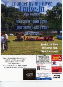 Thunder by the River Classic Car Cruise-in. 2 p.m. until 7 p.m. Free admission. Refreshments for sale.