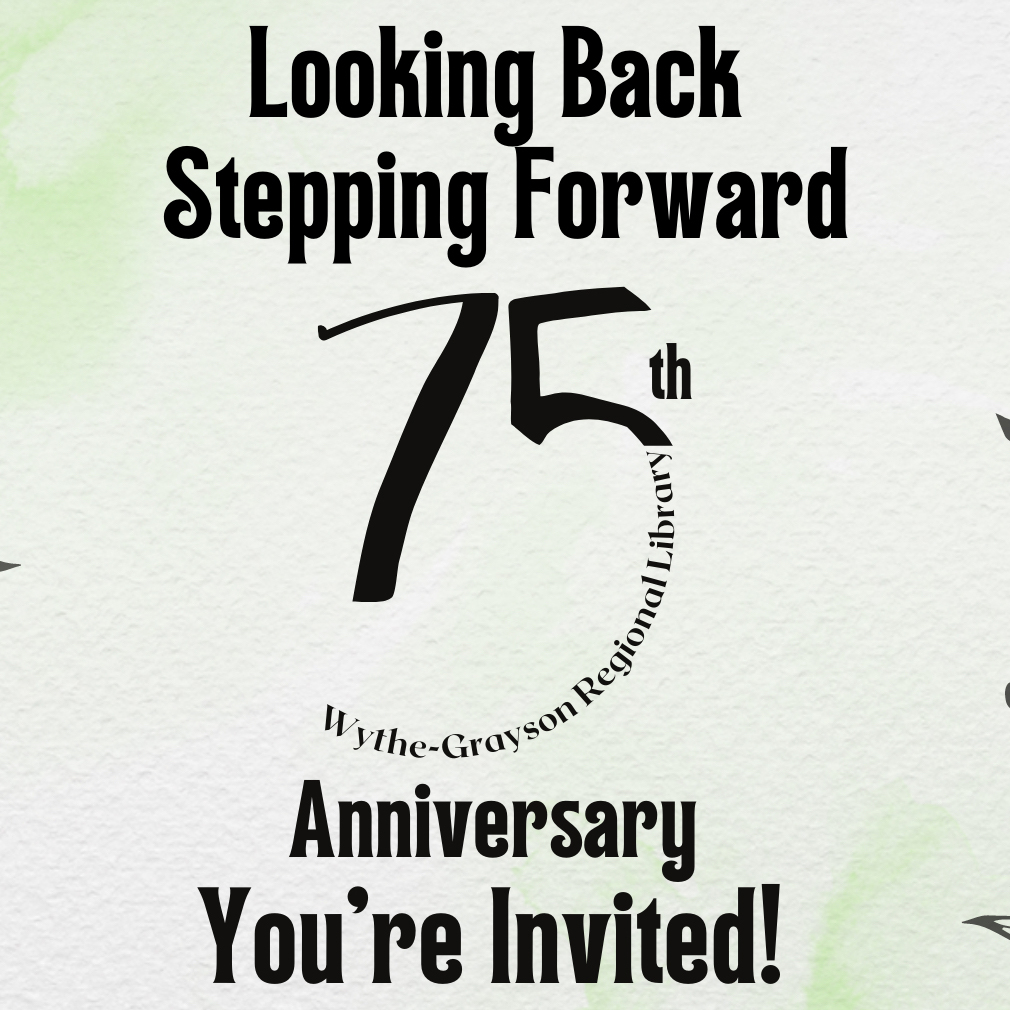 Fries Public Library 316 W. Main Street, Fries, VA, United StatesThe 75th Anniversary of the Wythe-Grayson Regional Library will be celebrated with an open house at the Fries Public Library, August 16, 12-2 p.m. Looking Back, Stepping Forward (Postcard) (Card) (Flyer (Portrait 8.5 × 11 in)) d